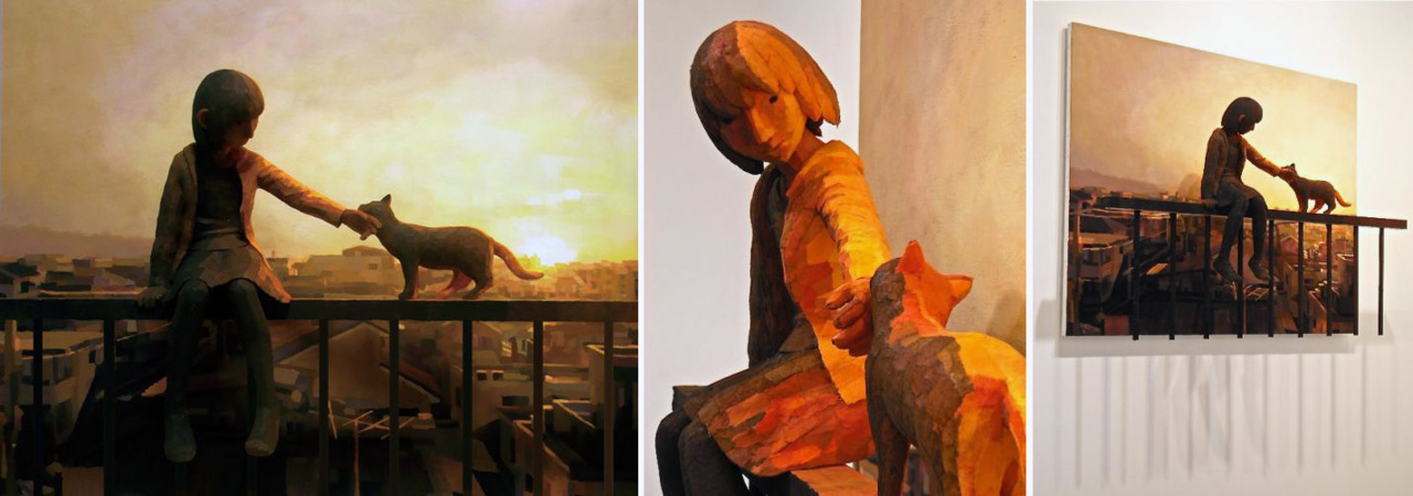 Shintaro Ohata hajnali és alkonyi fényekkel operál. Festménnyel egybeépített szobrai az élet apró dolgait úgy mutatják be, mint egy jelenet egy képzeletbeli filmből.