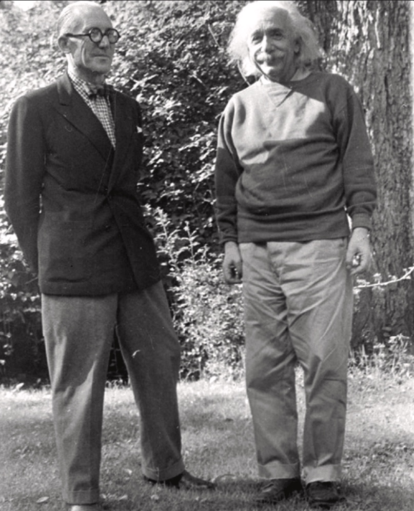 Le Corbusier 1946-ban New Yorkba utazott, hogy prezentálja az ENSZ számára a székházra vonatkozó elképzeléseit. Később Princetonban találkozott Einsteinnel akinek saját bevallása szerint is hosszasan magyarázta a modulor elméletet, de mivel fáradt és feszült volt, rosszul fejezte ki magát és belezavarodott. Amikor Einstein végül maga is ceruzát ragadott, hogy utána számoljon, Le Corbusier félbeszakította, és inkább másról kezdtek beszélni. Einstein a találkozó után ezt írta a modulorról: ‘…olyan arányrendszer, amely könnyűvé teszi a jót, de megnehezíti a rosszat’. Ez nem hangzik túlságosan tudományosnak, de Le Corbusier szerint különös lényeglátásra utal.