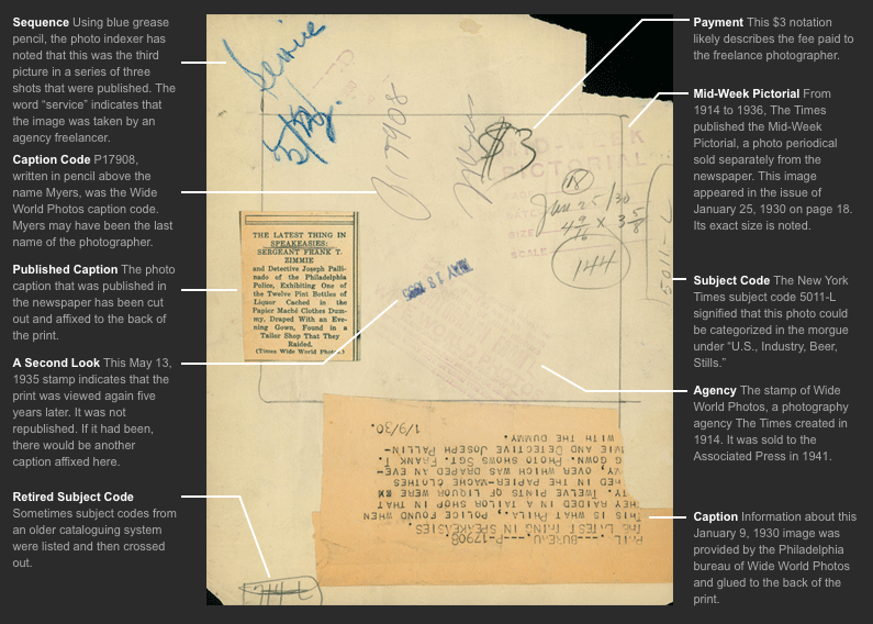 2012. februárjában a New York Times ‘The Lively Morgue’ címmel mikroblogot indított a Tumblr-en és elkezdte közzétenni képarchívumának kincseit. Noha a lap maga alapvetően nem egy képes újság, mégis már 1896-ban volt vasárnapi képes magazinja, a XX. század elején pedig már saját képügynöksége is. Ez a 160 év a sarkvidékek felfedezésének kora volt, a repülés, az űrutazás, a háborúk világa, a film-, a tudomány-, az atom korszaka és persze New York kulturális centrummá válása. Ezalatt lett a fotográfia teljes jogú illusztrációs és dokumentarista eszközzé; egyszóval kép készült mindenhol, mindenről. Hogy valójában mennyi, azt senki sem tudja. A lap saját becslése szerint az archívumban 5-6 millió kópia és kontakt, valamint mintegy 300.000 tasak negatív található további 10 millió kockával és akad még 13.500 darab digitális adathordozó DVD is.