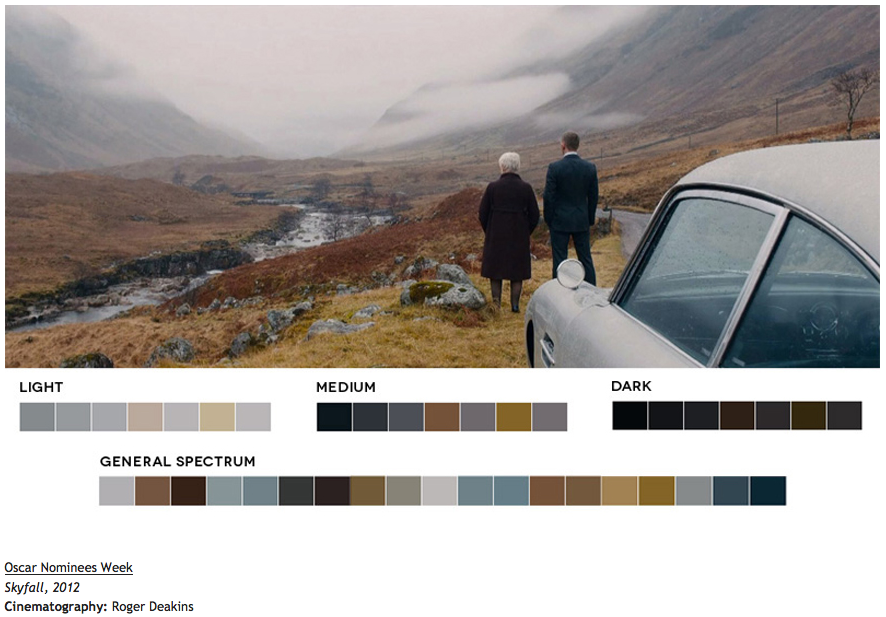 Roxy Radulescu Kaliforniában élő grafikus, illusztrátor épp a Skyfall-t nézte, amikor rádöbbent, hogy az egyes jelenetek színvilága jobban érdekli, mint a történet maga. Ahogy vége lett a filmnek, nekiállt megvizsgálni, hogy milyen színekből épülnek fel és rövidesen már színpalettákat gyártott. Ezt később kiterjesztette más filmekre is, a végén pedig blog lett belőle. Úgy gondolja, a puszta esztétikai élményen túl egyéb célokra is hasznosítható lehet a színvilág, a világítás, a jelmez, a díszlet, az operatőri munka kölcsönhatásának bemutatása. Mellesleg remek színpalettákhoz is hozzá lehet jutni.