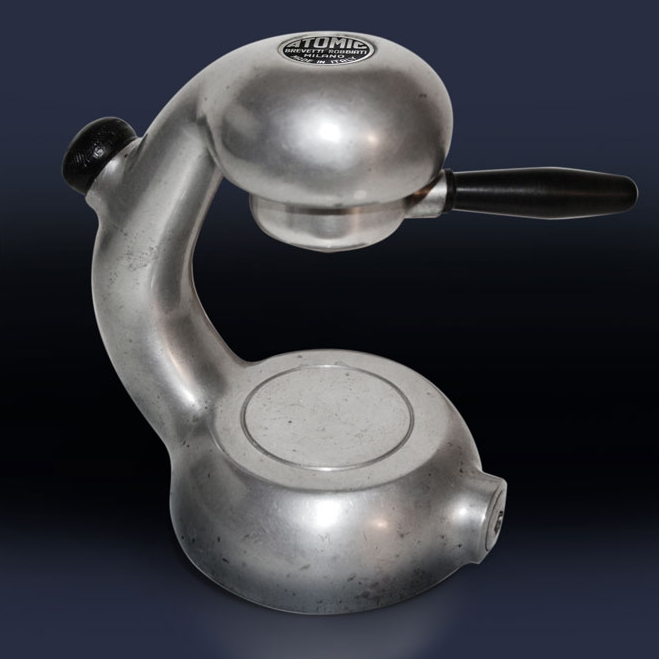 A polírozott alumíniumöntvényből készített Atomic kávéfőzőt a milánói Giordano Robbiati szabadalmaztatta 1946-ban. Azon túl, hogy Nagymamám remek kávét főzött vele, kialakítása az olasz ipari design fénykorának tömegtermékei közé sorolja a Vespa robogó, az Olivetti írógép, és a Pininfarina karosszéria mellé. Gyorsan népszerű lett és 1985-ig számos országban gyártották licenc alapján különféle változatait, többek között Magyarországon is.