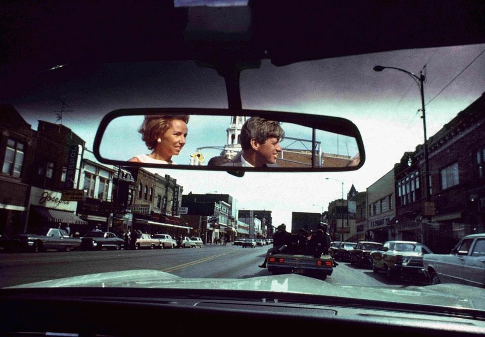 Robert & Ethel Kennedy campaigning in a small town (Indiana, 1968), photographed by Burt Glinn.