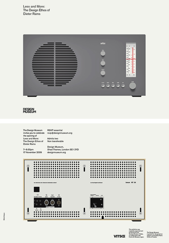 The invitation card featured the RT20 radio (1961), which according to Rams was the first Braun product where the back was given as much consideration as the front.