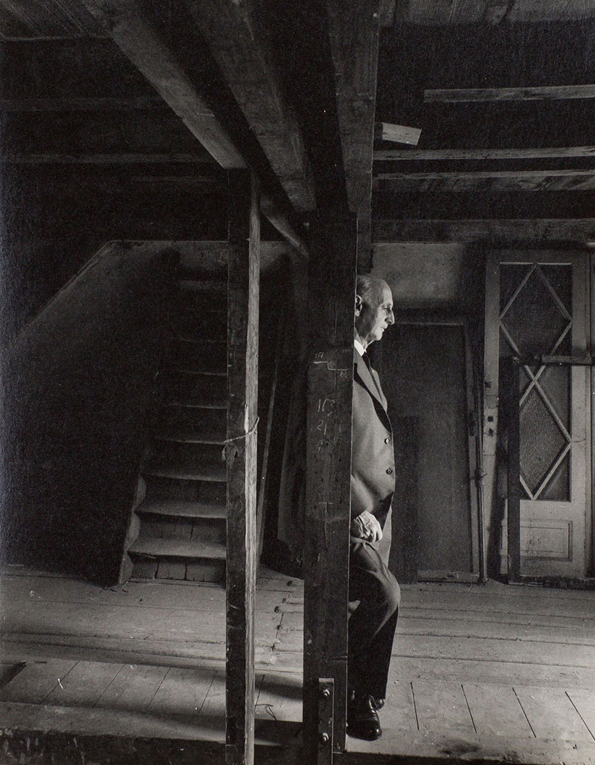 Otto Frank, Anne Frank’s father and the only surviving member of the Frank family revisiting the attic they spent the war in, photographed by Arnold Newman in 1960.