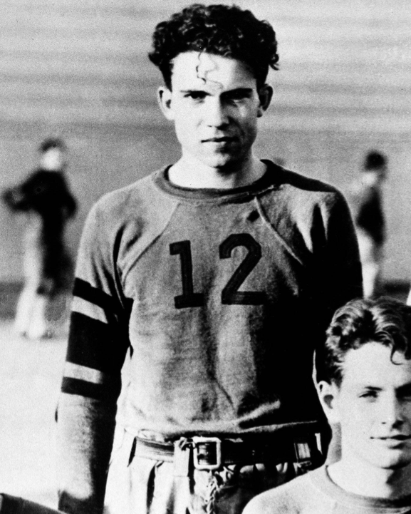 Young Richard Milhous Nixon as a member of the Whittier College football team (1933). He was noted for his enthusiasm however, remained on the team as a substitute as he lacked the athletic build.