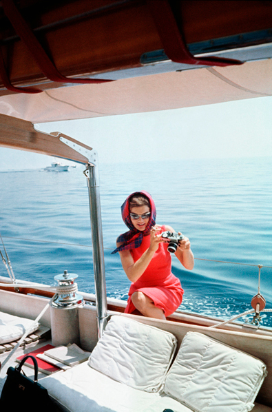 Jacqueline Kennedy taking a picture using Mark Shaw’s camera in Ravello, at the Amalfi coast in Italy on a private cruise (1962) photographed by Mark Shaw.