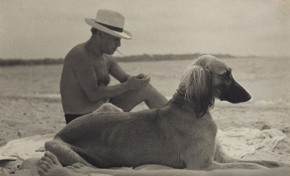 animals, persona, photography by mm2014-07-229:39 pm Kasbel Pablo Picasso on the beach (1935) with his Afghan hound, Kasbel, photographed by Man Ray. Like Loading... Related