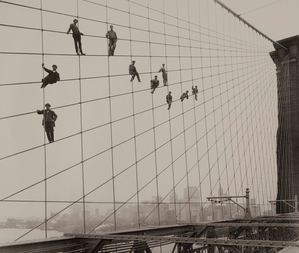 architecture, photography by mm2014-09-159:51 pm2021-07-23 Painters On Suspenders Painters working on suspenders on Brooklyn Bridge, New York (1914). Like Loading... Related