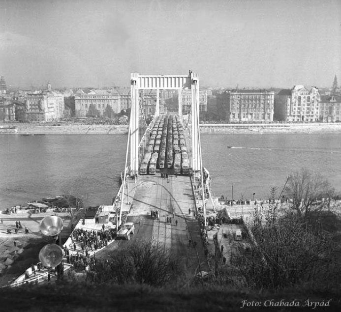 architecture, places, science.technology by mm2015-01-207:53 pm Stress Test Stress test of the Erzsébet híd (Elisabeth Bridge) in Budapest, Hungary (1964) photographed by Árpád Chabada. Like Loading... Related