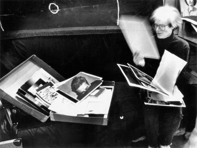 Phil Stern második világháborús képei mellett a hollywood-i sztárokról készített portréival vált híressé. Ezen az 1986-os képen Andy Warhol látható Stern James Dean-ről készült portfoliójával.