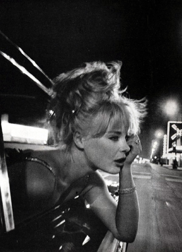 Elke Sommer speeds through Hollywood during the late hours in this promotional photo from a 1963 issue of the French magazine Stop. She was famous at this point, having appeared in films in Europe, but she wasn’t yet the global icon she would become. In less than a year the hit comedy ‘A Shot in the Dark’ would make her one of Hollywood’s biggest stars.