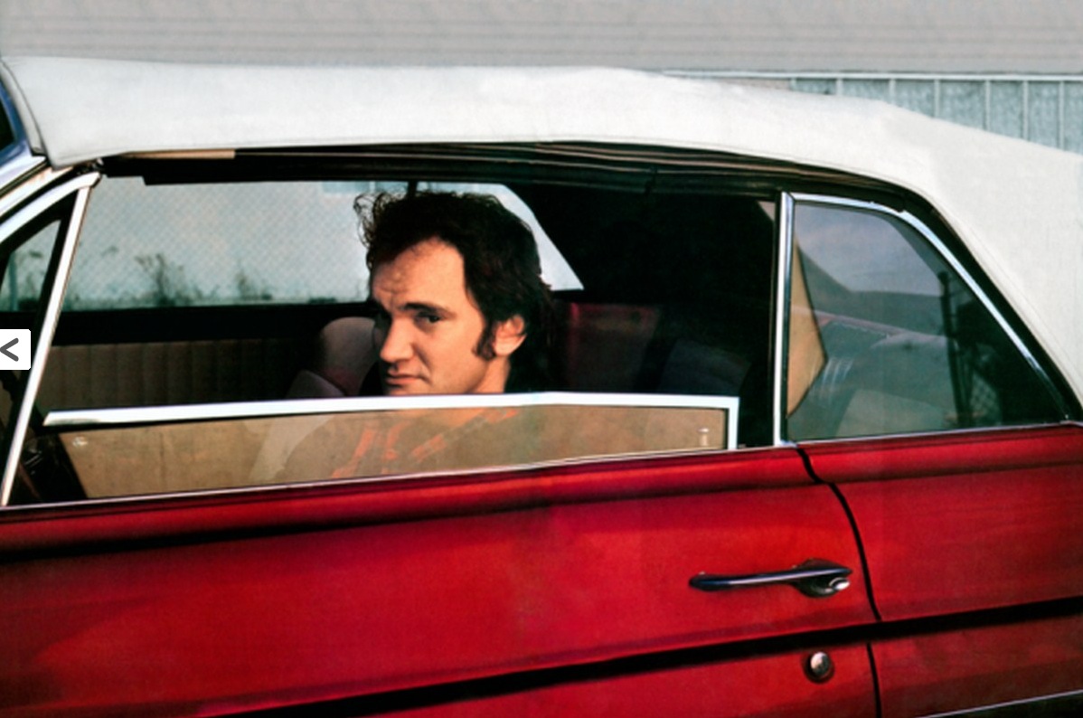 Quentin Tarantino in L.A. in his red 1964 Chevrolet Malibu, in which John Travolta drives an overdosed Uma Thurman to his drug dealer’s house in the ‘Pulp Fiction’ (1994).