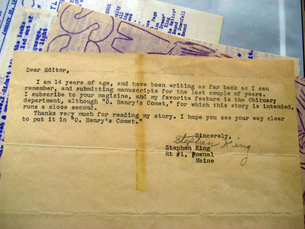 In 1961, the submission letter above — written by an aspiring author aged just 14 — arrived at the offices of Spacemen Magazine accompanied by a copy of ‘The Killer’, the polite youngster’s latest short story. Unfortunately for him the magazine’s editor, Forrest Ackerman, didn’t deem the tale worthy of inclusion at that point, and it would be another 33 years before he changed his mind and decided to publish it in issue #202 of another of his magazines: Famous Monsters of Filmland.