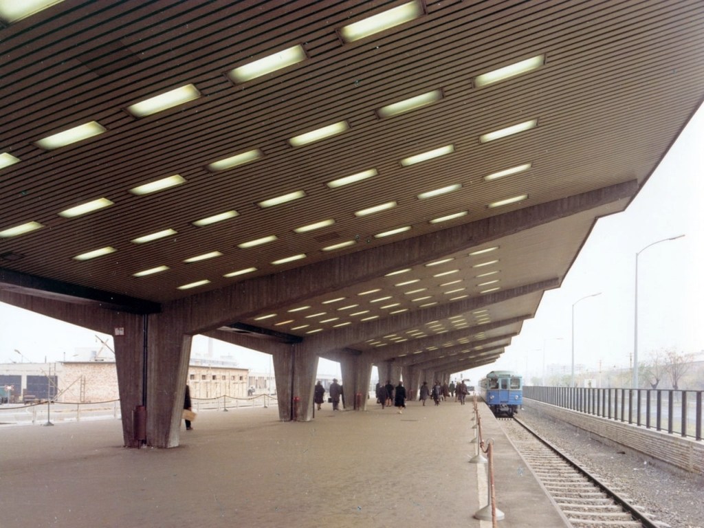 The eastern terminus of the Budapest Metro Line M2 at the intersection of Feher and Kerepesi roads shortly after the opening of the inaugural section of the line in 1970. The surface station has a platform with one track on each side available for the public.
